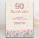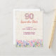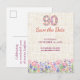 Elegant 90th birthday save the date postcard for her featuring soft pink and purple flowers, a feminine floral number design, and a beautiful milestone layout. A lovely choice for announcing a stylish ninetieth birthday celebration with a chic and graceful floral look. Enjoy!