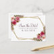 Elegante y sofisticada, esta tarjeta postal de "Save The Date" botánica presenta un romántico floral en acuarela rodeado de vegetación en un clásico fondo blanco. Un marco geométrico de cristal con forma de cristal en color dorado brillante proporciona un toque moderno. La redacción tradicional y clásica proporciona una sofisticación atemporal. Personalice los detalles de la boda para sus invitados en elegante letra y caligrafía de color morado cassis. La parte posterior de la tarjeta es una plantilla fácil de usar para rellenar con su dirección, fecha, nombre, ciudad y detalles del estado en blanco. No dude en hacernos llegar sus preguntas sobre este o cualquiera de nuestros diseños a invitationsuites@gmail.com.