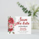 Una tarjeta postal para guardar la fecha con rosas rojas y rosadas y el aliento del bebé.