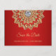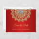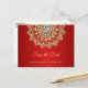 Postal De Anuncios Elegante Mandala Indio ROJO Boda GUARDAR LA FECHA