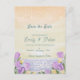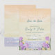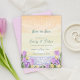 Boda elegante en la costa - Tarjeta de aviso de boda con puesta de sol en acuarela y flores.