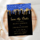 Invite a sus amigos y familiares a celebrar su día especial con estos goteos en negro, oro y azul purpurina ahorrando las tarjetas de invitación a la boda. Personalizar con tus nombres y toda la información de tu boda. Esta colección de bodas de la policía y bodas de las fuerzas del orden será la favorita entre todos los oficiales de policía, la esposa de la policía y las fuerzas del orden. DERECHOS RESERVADOS © 2020 Judy Burrows, Black Dog Art - Todos los derechos reservados. Elegante Purpurina de Oro Azul Perfora La Postcarta Del Anuncio De Fecha