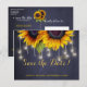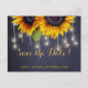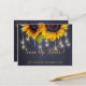 Boda rústica elegante de otoño, tarjeta postal de plantilla de "save the date" en pizarra azul oscuro de medianoche con hermosos girasoles grandes y una cadena de luces centelleantes. Rellene su información en los espacios, puede elegir personalizarlo aún más cambiando el color de fondo, las fuentes y los colores de la letra. ---- La invitación es adecuada para elegantes bodas de verano por la noche o bodas rústicas de otoño en el campo / bodas al aire libre en el jardín del patio trasero. --- ¡Si necesita ayuda para personalizarla, por favor contácteme!