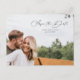 Esta tarjeta de anuncio Guardar la fecha incluye un encabezado de guión elegante, su foto favorita y el texto de su personalizado en un formato de postal conveniente.
