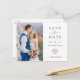 Esta elegante y sencilla tarjeta de 'save the date' cuenta con un hermoso ramo de rosas rosadas de acuarela y follaje con una foto de la novia y el novio.