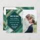Modernas, artísticas y elegantes tarjetas postales de guardar la fecha de boda con falso estampado dorado, verde esmeralda y blanco con patrón de mármol de ágata abstracto. Este diseño clásico y sofisticado es perfecto para la pareja que se casa, trendy y elegante. Personalice con su propio mensaje en la parte delantera, así como una inicial de monograma personalizada en la parte posterior. Todo el diseño de impresión de fotos.