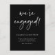 ¡Estamos comprometidos! Anuncie su compromiso con la familia y amigos con esta tarjeta postal de invitación de compromiso fotográfico del personalizable. Presenta caligrafía moderna y tipografía simple. Esta tarjeta postal moderna de compromiso fotográfico está disponible en otros colores. Personalice agregando sus fotos, nombres y otros detalles.