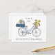 Divertida tarjeta de invitación móvil con ilustracion acuarela de una bicicleta cargada con maletas y plantas de la casa. El diseño está escrito con una tipografía de tipografía delgada y es completamente editable. El texto de ejemplo dice: "Estoy en movimiento.. ¡ponme al día en mi nueva dirección!", que puedes conservar o editar a tu antojo, así como añadir un mensaje personalizado con tu nueva dirección en la parte de atrás.