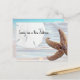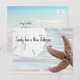 Grandes estrellas de mar y dólar de arena tarjetas postales de nueva dirección para una sola persona o familia que se muda a la costa. Anuncio de mudanza rústico con tema de playa tiene un ambiente tropical con un fondo de océano y arena de playa como fondo para el texto de la nueva dirección. Ambos lados están decorados.