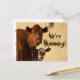 Esta divertida postal de la familia Cow muestra una foto de una vaca y un ternero en un rancho occidental. Añada sus propios datos personales para hacer de este diseño nuestro propio. Envíe esta invitación humorística para que todos sepan de su nueva ubicación. Fotografía creada por la galardonada fotógrafa Maria Jeffs.