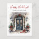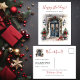 Esta tarjeta postal de anuncio de nueva casa para las fiestas con acuarela con "Felices Fiestas - Desde Nuestra Nueva Casa" en la parte delantera y "Deseándote paz y alegría esta temporada de fiestas" en la parte trasera en fuentes modernas pero tradicionales sería perfecta para enviar a tus amigos y familiares ya que te has mudado a una nueva casa este año. La puerta principal podría estar en cualquier lugar y las ramas y árboles de pino festivos, coronas y lazos rojos de fiesta añaden ese toque extra del espíritu de la Navidad. Para personalizar y hacer que estas sean tuyas, selecciona "Personaliza esta plantilla" y escribe tu información. ¡Es muy fácil!