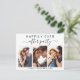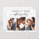 Anuncio de boda pequeña o fuga moderna y tarjeta postal de invitación a la recepción. La parte delantera cuenta con un collage de 3 fotos y "Fiesta Feliz Después" en una mezcla de tipografía simple y una escritura de moda con florituras. Debajo de tu foto, agrega tus nombres y fecha de recepción. En el reverso puedes personalizar tu anuncio e invitación con más detalle y agregar tus nombres en una escritura similar a una firma.
