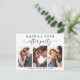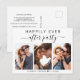 Anuncio de boda moderna o elopamiento o invitación de postcard de recepción. La parte delantera cuenta con un collage de 3 fotos y "Fiesta de Después de Siempre" en una mezcla de tipografía simple y una escritura de moda con florituras. Debajo de tu foto, agrega tus nombres y fecha de recepción. En el reverso puedes personalizar tu anuncio e invitación con más detalle y agregar tus nombres en una escritura similar a una firma.