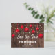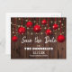 Navidades rústicos, salven la tarjeta de anuncio de fecha, con fondo de madera, baudias rojas, luces de cuerda y una plantilla clásica y editable que es fácilmente personalizada.