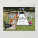 Agrega humor a tus anuncios de boda con esta divertida tarjeta postal de "Save the Date" que presenta figuritas de arcilla de una novia arrastrando a su novio. Con el novio resistiéndose juguetonamente y la novia decidida a llegar al altar, este diseño captura el lado más ligero del amor y el compromiso. Una forma divertida de hacer saber a los invitados que se acerca tu gran día, perfecta para parejas que disfrutan de la risa y la creatividad en la papelería de su boda.