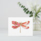 Dibujado artísticamente, dorado, libélula con joyas de color rojo y alas decoradas con rojo, floreciente, cerezo japonés con joyas sobre fondo blanco. Dragonfly de oro.