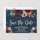 Postal De Anuncios Floral naval de Borgoña Marsala salva la fecha
