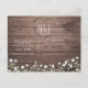 Tarjeta Postal de Flores de Aliento de Bebé Madera Rústica Guárdese la Fecha. Personalice con cualquier texto.