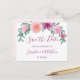Estas tarjetas de save the date presentan flores de acuarela rosadas. Son parte de una colección que incluye una gama completa de invitaciones de boda y papelería coincidente, como tarjetas de respuesta, tarjetas de información, etiquetas de dirección, pegatinas, programas y mucho más. Por favor, visite las páginas de la colección en nuestra tienda para ver la gama completa de artículos que puede personalizar para su boda.