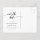 Elegante Guardar la postal de fecha con las palabras "Guardar la fecha" en un guión cursivo relajante en blanco contra un color de fondo editable (haga clic en personalizar para cambiar el color). Personalízalo reemplazando el texto del marcador de posición. Para obtener más opciones, como cambiar el tipo de letra y su tamaño/color o el espaciado entre letras, haga clic en el botón "Personalizar". *Tenga en cuenta que la marca de agua Zazzle que aparece en la vista previa del zoom NO aparecerá en el producto impreso final. © Rosewood y Citrus