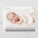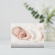 Un dulce anuncio de nacimiento de agradecimiento con foto con agradecimiento moderno y foto horizontal de sangrado total. La parte trasera es una postal con mensaje personal de la familia.