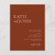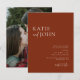Invite a sus amigos y seres queridos a su boda boho moderna con esta invitación de estilo rústico que incluye letras de caligrafía y fondo de terracota marrón. Personalice los detalles de la boda y la foto en el reverso.