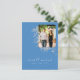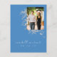 Tarjeta postal de guardar fecha con cubo azul con una foto y elementos de diseño plateados. Ver más diseños en mi sitio web: www.darmanddesigns.com