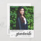 ¡Anuncia tu graduación a familiares y amigos con estas tarjetas de anuncio de graduación de moda! Este anuncio de graduación moderno y elegante presenta un hermoso texto con guión que deletrea la palabra graduación con una plantilla de texto para personalizar con el nombre, escuela y año de graduación. Agrega un mensaje adicional o haz clic en ''personalizar más'' para editar esta plantilla.