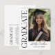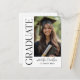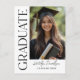 Las tarjetas postales de anuncio de graduación elegantes presentan una foto vertical del graduado con texto decorativo moderno en negro serif Graduate y texto que se puede personalizar con el nombre del graduado y el año de graduación. La parte posterior de la tarjeta postal incluye una redacción de anuncio simple que se puede personalizar y enviar por correo por los orgullosos padres del graduado. Simplemente incluya una dirección de invitado y un sello de tarjeta postal para enviar por correo, no es necesario un sobre.