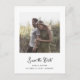 Estas sencillas y elegantes tarjetas postales de guardar la fecha de boda en blanco y negro presentan una tipografía de estilo vintage caprichosa con tu foto y un código QR escaneable para el sitio web de tu boda o detalles.
