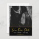 Foto personalizada de boda guardar la fecha. Un elegante negro y blanco con detalle de lámina de oro impresa.