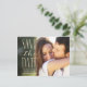Este resplandor rústico que salva la fecha incluye una foto completa y letras purpurinoso. El texto en color champán dice "Salva la fecha" con letras casuales a mano con un aspecto purpurina. Debajo del diseño de la tipografía, agregue sus nombres y detalles del boda. Se pueden añadir detalles adicionales al dorso de la postal.