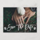 Tarjeta de Foto de Bodas con Caligrafía Moderna y Huellas de Patas para Save the Date.