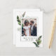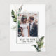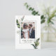 Esta postal de invitación de guardar la fecha de la boda con foto presenta un follaje tropical verde de acuarela, hojas de palmera, hojas de plátano con acentos de hojas doradas falsas. Es perfecto para una boda en la playa o en un destino. >>> Consulta toda la colección >>> https://www.zazzle.com/collections/tropical_foliage_green_collection-119021829937676776