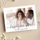 Postal moderna de invitación de compromiso con tu foto rebosante de "felicidad para siempre" en un guión de moda con toques y tus nombres unidos con un corazón. En el reverso, agregue una foto adicional, personalizar el mensaje y agregue sus nombres en un script tipo firma.