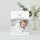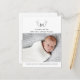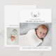 Anuncio de nacimiento moderno con fotos grandes a lo largo de la parte inferior, vegetación botánica gráfica y monograma con tipografía clásica y moderna. En la parte posterior hay otra foto con mensaje personalizable.