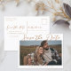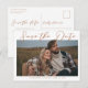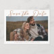 Esta tarjeta postal de guardar la fecha de la boda de color marrón sienés presenta un cálido color regio sobre una foto de compromiso de otoño de la feliz pareja. La encantadora escritura minimalista de color bronceado presenta tipografía cursiva simple junto con una fuente serif moderna y elegante. Este marrón suave es perfecto para un evento de tarde de otoño.