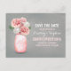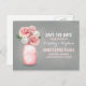 Encantador y adorable tarro de albañil pintado con flores rosas/blancas salvan la postal de fecha. Sencillamente lindo y divertido tarro pintado de boda de tarro de albañil pintado en papel - vintage pero moderno frasco de albañil salvar las postales de dátiles.