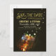 Especial y único salve la postal de fecha con hermoso capó de máscaras con luces brillantes - luciérnagas. Moderna pero vintage, ahorra la fecha perfecta para los temas rústicos de la boda rural.