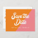 Postal De Anuncios Funky Retro Naranja Boda Rosa Guardar La Fecha