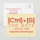 Extravagante y divertida tipografía geeky Guardar la postal de fecha con un diseño de texto simple pero moda y un suave fondo de papel falso texturizado. Este diseño ofrece una manera única y encantadora de informar a amigos y familiares para que ahorren la fecha de su próximo boda y realmente permite que su lado geek o nerd brille. Personalizar esta invitación con los detalles de su boda y ¡tenga un mensaje especial!