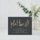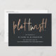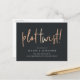 ¿Necesitas cambiar la fecha de tu boda? Notifica a tus invitados con esta moderna y divertida tarjeta postal que presenta "giro inesperado!" en letras manuscritas de falso foil de cobre sobre un fondo negro suave y rico. Personaliza con tus nombres y nueva fecha de boda debajo en letras blancas.