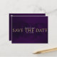 Tarjeta postal de glam moderno en púrpura, negro y dorado para aviso de fecha de salvación
