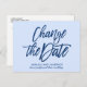 Elegante anuncio de posposición o cambio de fecha de boda con mármol blanco y brillo, con tipografía de moda que dice "Cambiar la fecha" en brillo azul brillante sobre un fondo azul pálido glamoroso. Para solicitud personalizada, escriba a citronelladesign@gmail.com