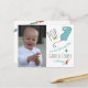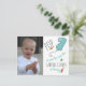Invitación colorida de cumpleaños número uno con tema de globos invita a los invitados a venir a divertirse. Invitación linda y moderna para el pequeño en tu vida. La invitación presenta un globo #1 y una vela dibujados a mano, corbatas de moño y estrellas. También hay un área para una foto de tu chico porque todos sabemos que es demasiado lindo para no mostrarlo. Esta invitación de tarjeta postal también te ahorrará $$$ ya que no solo cuesta menos que otros anuncios, sino que también te ahorra $$$ en franqueo. También hay una versión para niñas y productos de fiesta coordinados disponibles en nuestra tienda. NOTA: Al reemplazar la foto, asegúrate de seleccionar una foto con orientación de retrato solamente: una foto con orientación de paisaje NO funcionará con este anuncio.