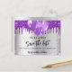 Un Save the Date femenino y moderno para una fiesta de cumpleaños de 18 años (o cualquier edad). Un fondo con apariencia de plata falsa decorado con purpurina y globos morados falsos. Personalice y agregue una fecha y nombre/edad. El texto: Save the Date está escrito con un estilo de letra manuscrita grande y de moda.