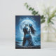 This elegant gothic wedding save the date announcement postcard features a skeleton couple wearing blue wedding attire in a romantic setting with the moon and ocean behind . The back of the postcard has a matching image and your wedding details. Image generated with AI.