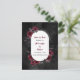Oscuro y morboso salvan la tarjeta de fecha con la parte de Hasta la muerte nos dice, rosas rojas oscuras, murciélagos y telarañas. Tiene un fondo acuático negro ahumado. La tipografía con letras negras contribuye a la sensación gótica de la invitación. Vea también nuestros artículos de coordinación.