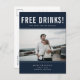 Esto salva las postales de cita son para la pareja divertida que no puede esperar para compartir su cita con su familia y amigos. El diseño moderno de la foto "Bebidas gratis (y nos vamos a casar) es personalizado con tu foto, nombres, fecha de boda y ubicación. Añada la dirección de devolución y los detalles del boda al reverso de la postal.