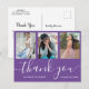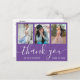 Graduación 3 Collage de fotos Púrpura Gracias Postcard. Para una mayor personalización, haga clic en el botón "Personalizar" y utilice nuestra herramienta de diseño para modificar esta plantilla.
